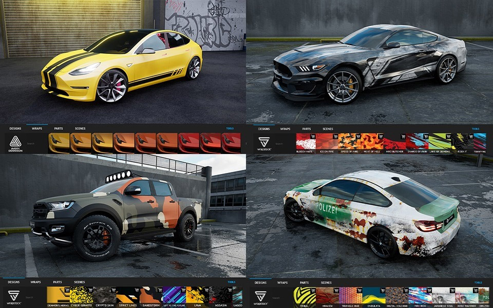3D Changer is an advanced tool, which helps you see all Wrapstock designs on more than 100 cars. Obtain high-quality 3D renders right in your wrapping shop. Change the design and color according to your liking. It’s like a game. Have fun!
